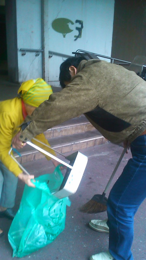 月一回の団地周辺掃除中。