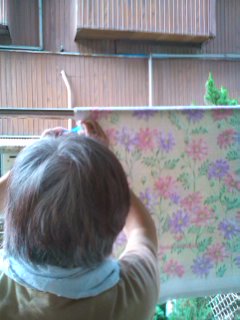 でもいつもどおりに洗濯物を干す手際は、まだまだ立派なもの。