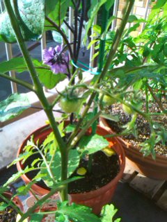 私は、「お疲れ様」と同時に、ベランダの茄子とトマトの「生きとし生けるもの」の営みをメールした。
