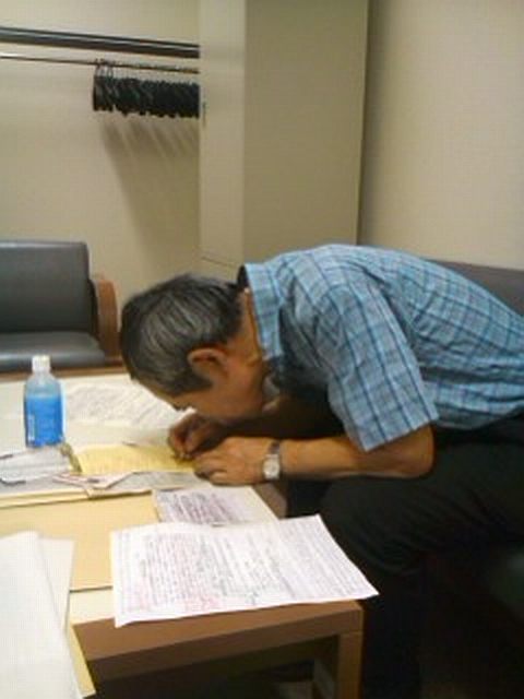 事前の打ち合わせ後も、原稿に手をいれるKさん・・