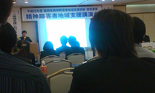 昨年の流行語大賞になった、「ゲゲゲの・・」の里からのお客様。お土産にお菓子まで持参いただき、しっかり観光大使役も果たしておられました。未曾有の大雪事件もあり、聴衆の興味はつきません。雪かき支援から、障害者自立支援法をとりまく今の動きや今後への展望、精神保健福祉の最近の動向、地域生活支援とは・・、地域診断、町づくり・・と幅広い視点でお話いただきました。