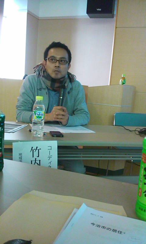 第一部では、「居住サポート事業の4年間~北九州市の実践から」と題してこの4年間の活動について報告させていただき、第二部では「ノウハウと課題を共有しよう!」として、愛媛県内での実践報告を精神科病院、中間施設(生活訓練施設)、居住サポート事業所、訪問看護ステーション、それぞれの立場からの報告をいただきました。そして、指定発言者として、(社)愛媛県宅地建物取引業協会宇和島支部の方々。そして、コーディネーターは熱き弁士、地域活動支援センター柿の木(宇和島)の竹内さん。