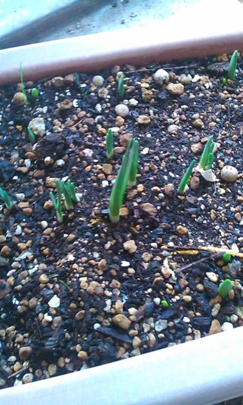 ベランダの水仙は春に備えて芽を出し・・