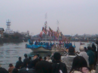 この祭りは、・・大分県豊後高田市で、毎年正月に行われる豊漁と航海の安全を祈願する祭事。大分県の選択無形民俗文化財で、おおいた遺産にも選定されている。大漁旗や吹き流し、万国旗などで華やかに彩られた宝来船に締め込み姿の若者が乗り込み、豊後高田市の中心を流れる桂川右岸の玉津磯町から出発。まず下流の琴平宮(金毘羅宮)に向かい、餅を供えた後、旋回して上流の若宮八幡神社を目指して、「ホーランエンヤエンヤサノサッサ」の掛け声とともに上げ潮に乗って漕ぎ上がる。船からは紅白の餅が撒かれ、川岸の観客から祝儀が差し出されると若者が厳寒の川に飛び込んで受け取りに行く。暦が干満と連動する旧暦の頃は元旦の行事であったが、現在では満潮の時間を考慮して日程が決められている。