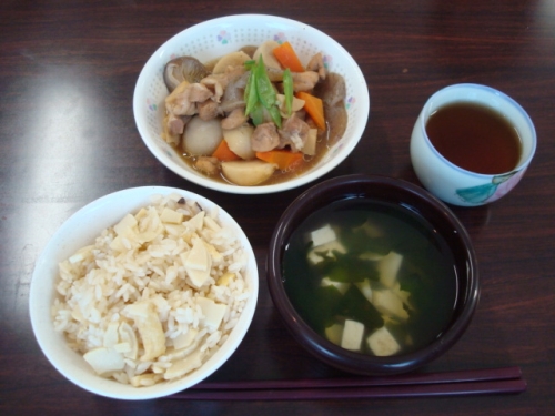 メニューは、タケノコの炊き込みご飯、タケノコの入ったがめ煮、タケノコのお吸い物・・とタケノコづくし。