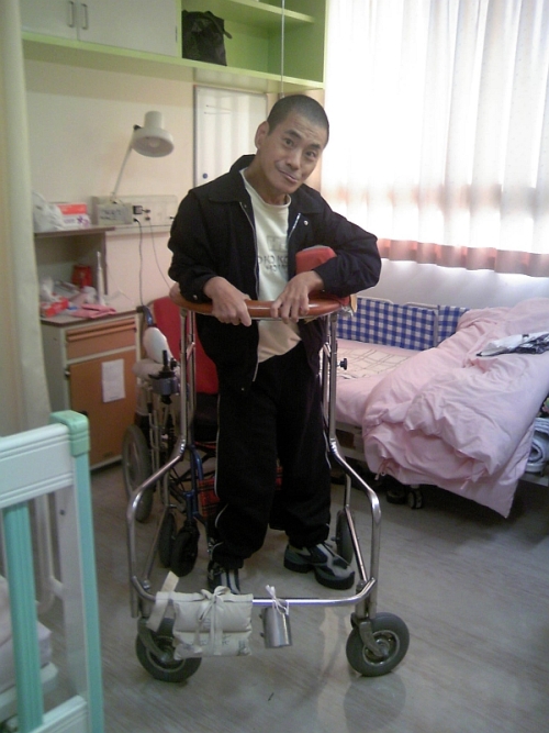 歩行器を使ってではありますが、久々に立ち、そして歩き・・その感慨はひとしおの様子です。