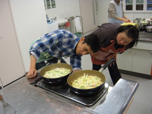 自分でつくるとなかなか焼け具合がわからず、なんかまずいけどちょっとコツをつかんだかな、いつもはお好み焼きソースの味しかしないけどしっかり具材の味がしますね、初チャレンジのケーキもうまくいったし自分用のクリスマスケーキに再チャレンジしようかな・・、感想もそれぞれでした。