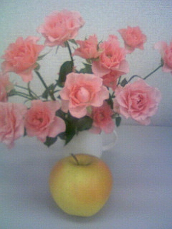 昨日は、青森から送られてきたというリンゴとバラの花と・・いただきました。