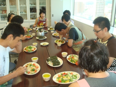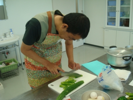ゴーヤを切るのもとても丁寧だったのですが、炒める際もピーマンの固さに気を配り・・、その横顔は真剣そのもの。でもその熱意も伝わり、出来上がったチャンプルーを「美味しい!!」と一気に平らげてくれるサポーターさんの笑顔の横には、ほっとしたTさんの笑顔がありました。