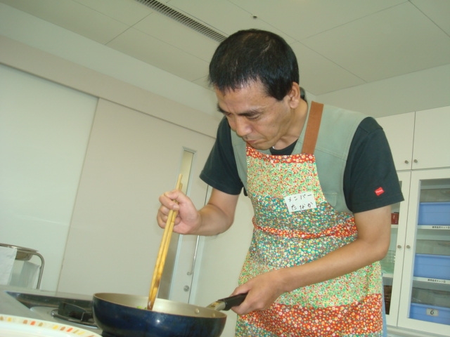 でも、今回のチャンプルーは各自が自分の分を炒めます。併せて、サポーターさんからも「ついでに私の分も作ってくださいよ。」と頼まれ、腕をふるっていたただきました。