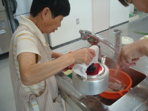 お米をといだり、しいたけを切ったり・・、調理の下ごしらえはおてのもの。