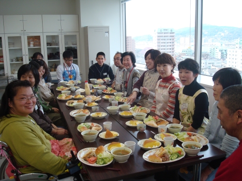 「なれない町で、一緒に銀行に行ったり、買い物に行ったり、区役所での異動の手続きの同行や支援を行ったり、一緒に町を歩いてみたり・・そんな個々の支援がいるんじゃないかな、そんなことができないかな・・。顔なじみの延長でできることってたくさんあるんじゃないかな。」、「生活の中で戸惑ったことの手助けがいるんじゃないかしら。」、「特に施設や病院から出た人は生活の中の細々したところに戸惑いや不安っていっぱいあるんじゃないかな・・」、・・「このスキルアップランも一箇所じゃなくてそれぞれの住んでる近くの市民センターとかでできるといいですね。」、「地域の市民センターとかにフリースペース的な場があるといいですね。」「そこで、お菓子づくりだったり、ある意味クラブ活動的な活動もともにできるといいですね。」・・素敵な意見をたくさんいただきました。