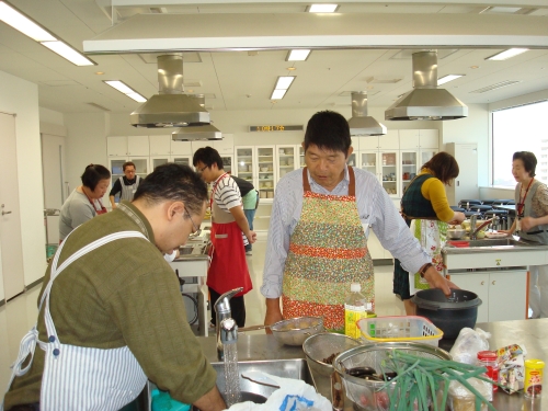 かわいいエプロン姿のジェントルマンが吉田さん。「ドリーム舎」を門司区で運営しておられます。