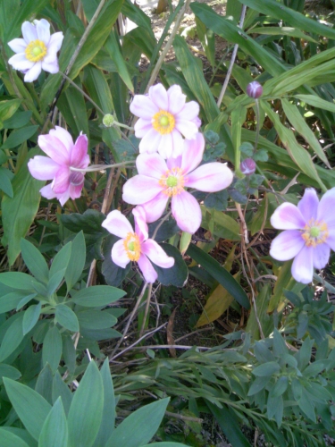 吉田邸の庭ではピンクの秋明菊が、風にゆれていました。