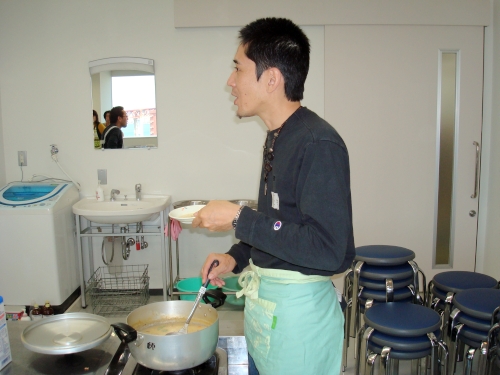 「いつもは昼ごはんをあまり食べないから、10Kg太ったかも・・」とAサポーターが言えば、「最近は、お金がなくて納豆とか豆腐だけ、とかいう日があったので胃がビックリしてるかも・・」とBさん。Cさんは、「これにビールがあったら最高だなぁ・・」と一言。食欲の秋の一日でした。