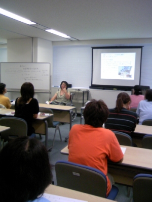 平成20年度北九州市障害者(児)ホームヘルパースキルアップ研修~「現場におけるコミュニケーション支援Ⅲ 知的障害者・精神障害者の支援」の部分として、ヘルパーさんたちに当事者としてわかってほしいこと、伝えたいこと、気をつけてほしいこと・・などを話していただくことをお願いしていたのです。15分くらい話してもらい、質問をお受けしたり、関わっているヘルパーステーションとやりとりをして話題を拡げたり・・、と40分くらいをお付き合いしてもらいました。元々気を使ってなかなか言い出せなかったり、うまく言葉をまとめられなかったり、笑ってごまかしてしまったり・・、そんなはがゆい思いもしている彼女。数日前から、文章もまとめ、一生懸命「伝える言葉」を選んでくれました。