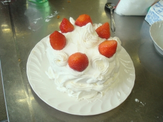 先週の土曜日、22日に生活力スキルアッププランの第五回目を開催いたしました。今回の会場は地域の市民センター。車椅子のメンバーにはちょっと行動を制限される部分はありましたが、そこはいつもの知恵と力でどうにかクリアーし、アボカドサラダ、チキンの照り焼き、ガーリックトースト、そしてクリスマスケーキ。サポーターさんたちがそれぞれに担当を決め、メニューもなるべく簡単にアレンジしていただいたもの。土台となるスポンジケーキは、佐藤サポーターの担当。「炊飯器で作るスポンジケーキ」・・炊飯器でできるの??驚くなかれ、立派にできるのですよ。でも、この日体調不良でプランには欠席。でも朝一番に、「インフルエンザかもしれない・・」という体で小雨の中、しかもバイクで二種類のスポンジケーキを運んで来てくれました。感謝、感謝です。体調の悪さをおして、前日に仕込んでくれた彼に頭が下がります。このケーキが届かなかったらプラン全体の組み立てが狂うよなぁ、予算も変わるよなぁ、ケーキないと寂しいだろうなぁ・・・いろんな思いが頭をよぎったことでしよう。でも、一番のエネルギーは「美味しかったよぉ(*^_^*)」と言ってくれるメンバーの笑顔だったかもしれません。芸術家魂に目覚めたMさんが、スポンジをキャンバスにみたてて本当に美しく、そして美味しく仕上げてくれました。その画像だけしか、佐藤さんには届けられなかったのが残念でしたが、味も格別でした・・。