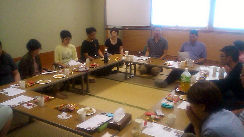 和室で、テーブルを囲んで、みんなで喧々諤々・・(?)
